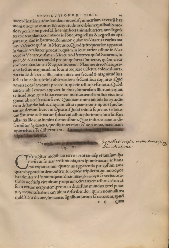 One example of intervention is the alteration of the title of a chapter on the Earth’s motions. Originally it read “Demonstration of the Threefold Motion of the Earth,” but after censorship it became “On the Hypothesis of the Threefold Motion of the Earth and Its Proof.” The difference is significant: instead of scientific certainty, only a “hypothesis” remained.